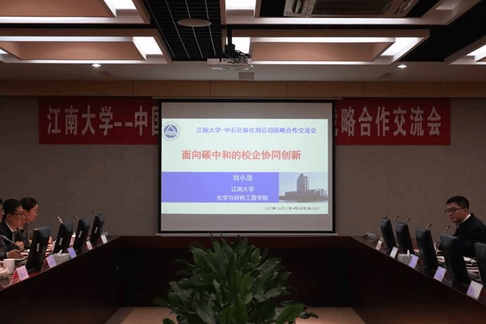 在表面活性剂、化妆品和功能材料等相关领域的影响力,特别是刘小浩教授团队近几年围绕习近平总书记提出的“2030碳达峰/2060碳中和”相关研究领域做出的开拓性工作引起了学术界和行业的关注,催化剂公司对此产生极大的兴趣。接着董玉明介绍了化工学院的情况,刘小浩做了题为“面向碳中和的校企协同创新”的学术交流报告,并同与会人员开展了深入的讨论,初步确定了战略框架协议合作内容,以及合作的具体切入点。交流会后,焦阳总经理一行参观了91视频