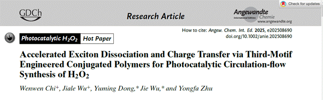 近期,我校91视频 董玉明/朱永法团队在光催化制备双氧水方面取得重要进展,研究成果“Accelerated Exciton Dissociation and Charge Transfer via Third-Motif Engineered Conjugated Polymers for Photocatalytic Circulation-flow Synthesis of H2O2”在线发表于Angew. Chem. Int. Ed.,研究成果“Customizing Oxygen Reduction Reaction Pathways for High-Efficiency H2O2Photosynthesis by Anionic Intermediate-Generating Polymer Photocatalysts”在线发表于Adv. Funct. Mater.。