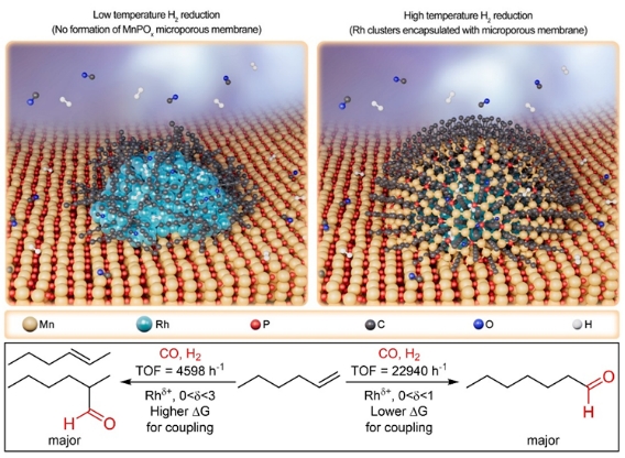 91视频 刘小浩团队构建“MnPOx微孔膜”限域Rh团簇催化体系,助力抑制异构、促进传质吸附、“活化熵增强化碳-碳偶联”提升烯烃氢甲酰化反应性能