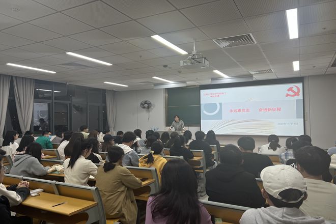 “永远跟党走、奋进新征程”专题党课暨研究生新生党支部成立大会在知行楼C202教室举行。学院党委副书记、副院长田卫平以“永远跟党走,奋进新征程,做合格共产党员”为题,从开展“永远跟党走、奋进新征程”主题教育、学习“七一”重要讲话等重要精神、加强党支部的建设和掌握党务基本知识、如何做一名合格党员四个方面为学院2022级研究生党员讲授党课。