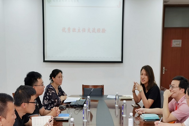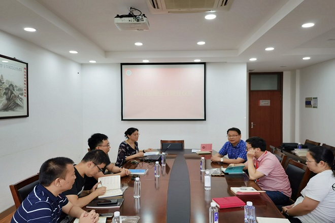 班主任工作条例》,向各新生班主任介绍了班主任工作职责、班主任工作考核、班主任待遇奖惩等内容。她强调,班主任是开展大学生思想政治教育工作的骨干力量,是大学生健康成长的指导者和引路人。班主任队伍建设对于全面贯彻落实党的教育方针,将大学生思想政治教育的各项任务落到实处,具有重要意义。