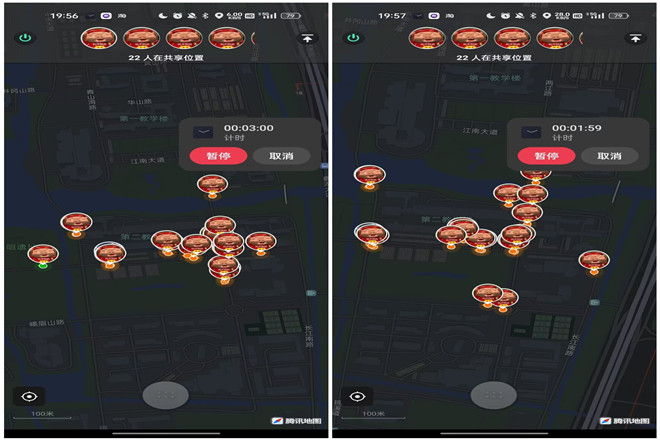 游戏开始前,由心理委员抽签进行分组,并分发各组的丝带。每位同学绑好丝带并全部进入位置共享界面后,心理委员强调了游戏的安全事项。介绍完游戏规则和注意事项后,游戏正式开始,五分钟之后抽取一队来寻找其他人。游戏开始后,同学们都积极地参与到各队的抓人环节,最后粉队的同学获得了最终胜利。大家在跑动和躲藏的过程中笑声不断,最后一致同意成为粉队的成员。