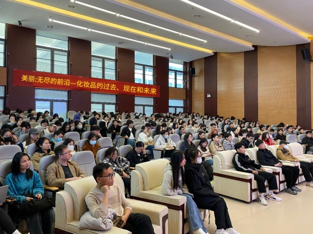 化工学院杨成教授围绕化妆品行业的发展历程作此次学术报告,报告由辅导员李晓洁主持,东氿校区全体研究生参加此次活动。