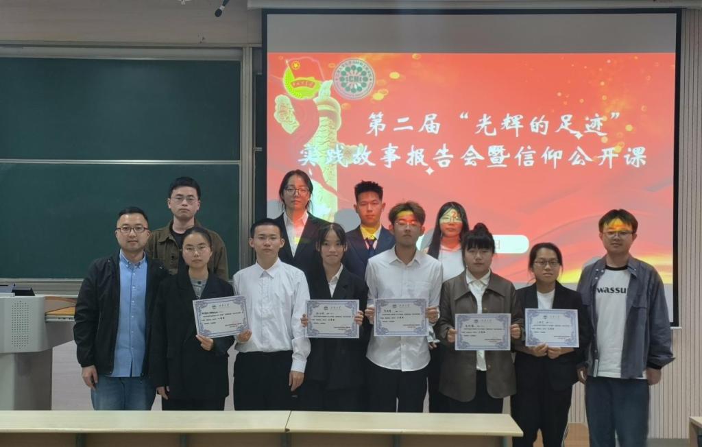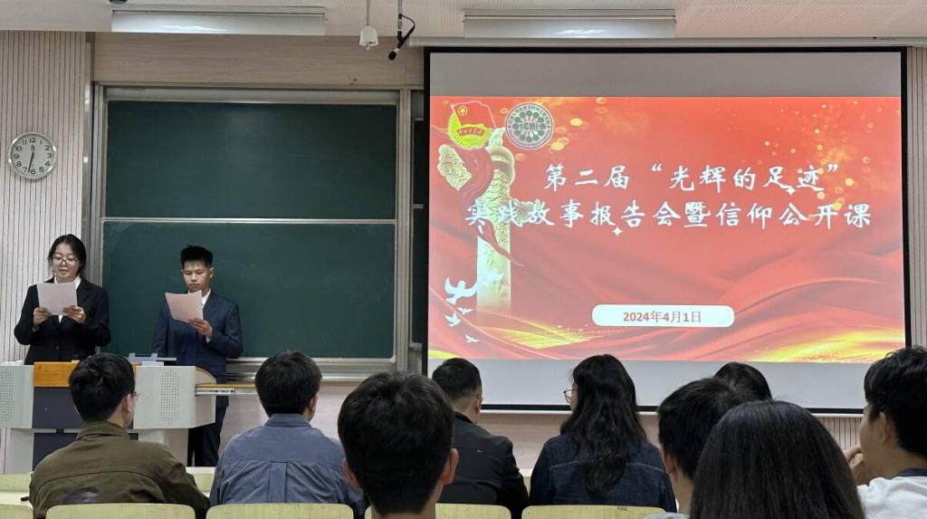 在二教2C211教室举办第二届“光辉的足迹”实践故事报告会暨信仰公开课。学院分团委书记鞠峰、2021级辅导员郝林青、2023级辅导员马航威、“鼋访风华”实践团负责人鲁士杰、张诗茹出席本次活动并担任评审,2023级100余名本科生参加了活动,活动由张林曼、祝方平主持。