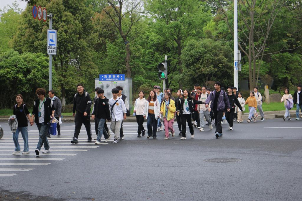 ,沿湖徒步欣赏蠡湖美景和江南春日风光。14日清晨,侯玉莹向参与学生介绍本次毅行拉练的路线和注意事项后,同学们按组列队,有序前行。
