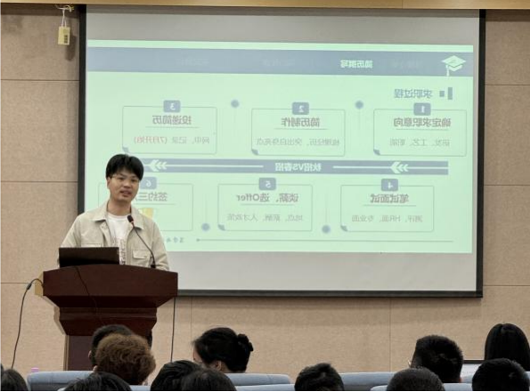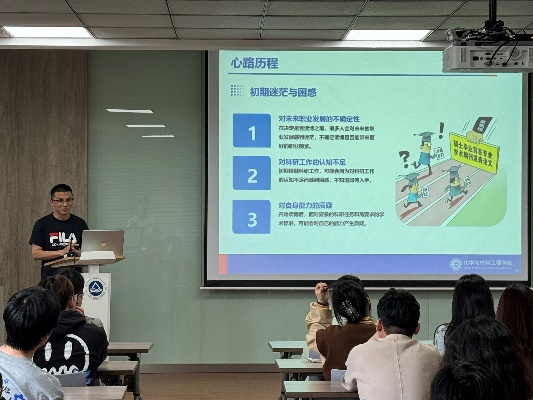 26日,化山论见—职等你来就业指导专场讲座邀请了化工学院博士生辅导员、学院就业指导老师高静,从就业市场、就业资源与求职准备等方面做系统讲解。并邀具有优秀求职经验的石进、吴雨闻、王倩三位同学分享就业故事,为即将步入求职阶段的同学提供独到见解与实用策略。这些成功案例与职业经历,指引同学在多元化求职路上做出明智选择。讲座内容丰富,学生收获了宝贵的求职经验与启示。