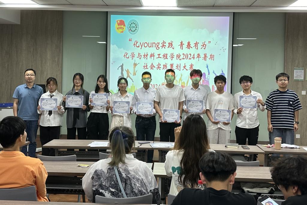 在化工楼A316会议室举办“化young实践,青春有为”2024年暑期社会实践策划大赛,学院分团委书记鞠峰、2023级本科生辅导员马航威出席答辩会并担任评委,活动由分团委实践部张雪洁主持。