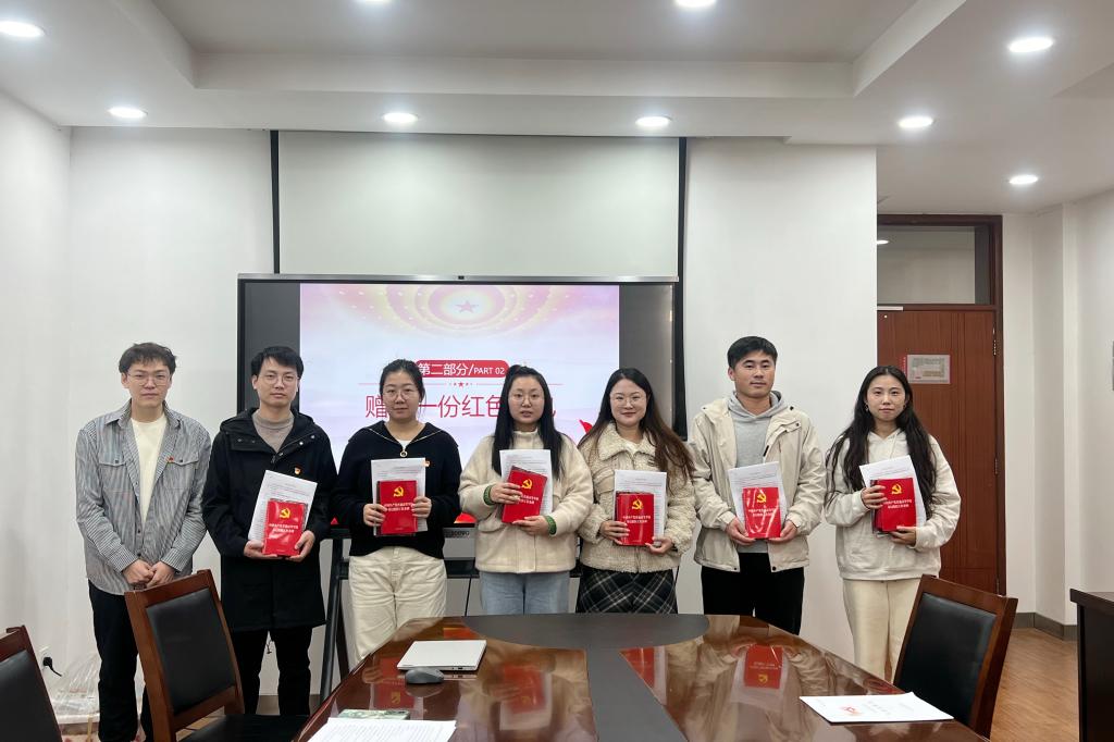 赠予红色礼包,背上行囊再出发。大会在全体奏唱国际歌中隆重召开。党支部书记李家豪同志为每位毕业生党员送上学院为大家准备的红色礼包,包含党徽、《中国共产党章程》、定制笔记本、纪念书签和笔、《毕业生党员须知》、党纪学习教育相关书籍。大礼包既是一份礼物,更是一份情怀;既是一种激励,更是一份鞭策。温馨提醒各位毕业生党员如何办理组织关系转接,勉励大家在新的工作岗位上仍要认真进行理论学习,加强思想道德修养,提高政治觉悟,增强使命意识。