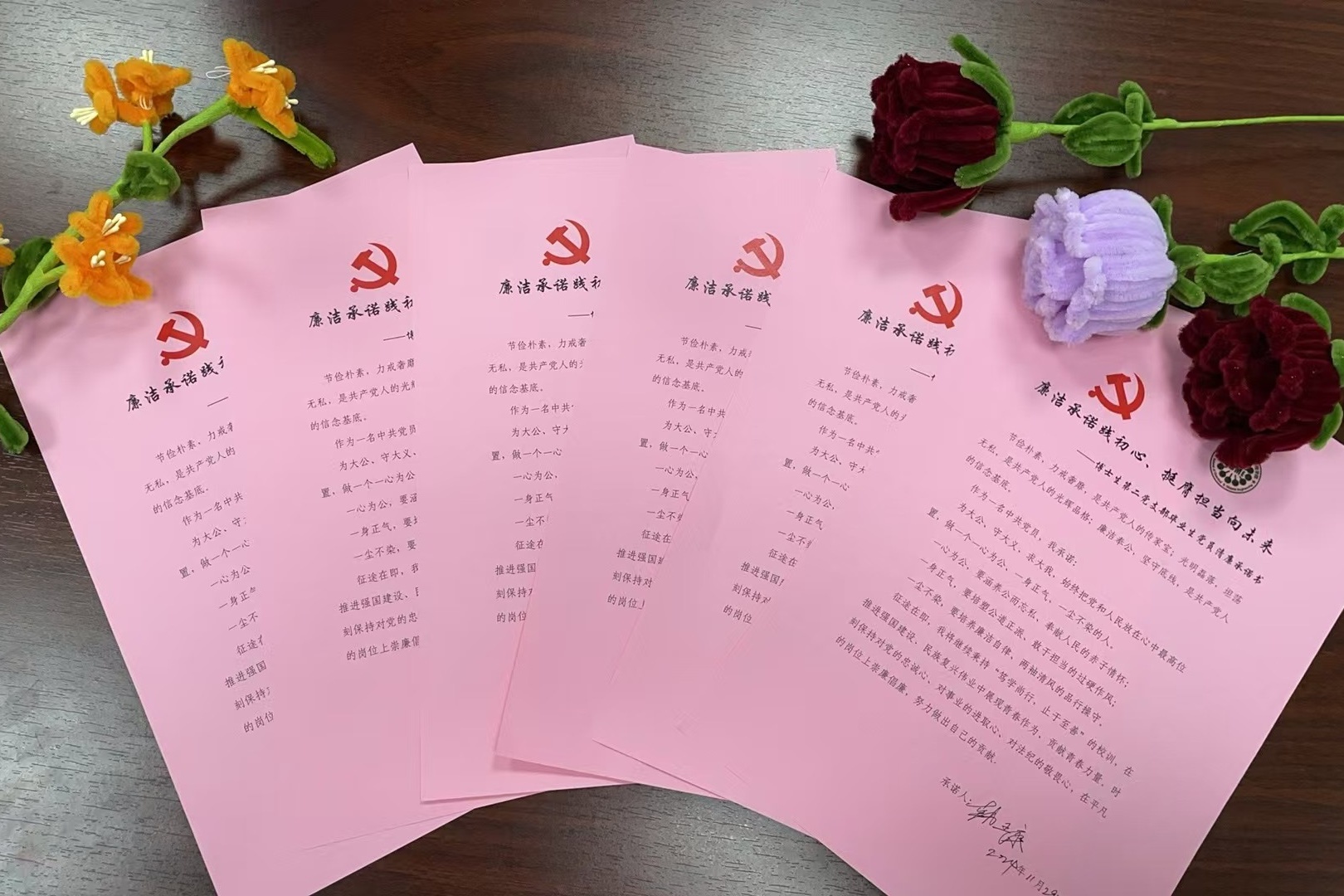 签署廉洁承诺,争当楷模做表率。为增强毕业生党员的政治免疫力,全体毕业生党员学习并签订了《毕业生党员廉洁从业承诺书》,希望大家坚定信念,廉洁润心,严于律己,廉洁修身,心存戒惧,扣好职场和人生的“第一粒扣子”。毕业生纷纷表示,作为一名中共党员,在未来的日子里,必将以身作则,拧紧思想总开关,坚守学术底线和人生底线,发扬共产党员廉洁从业的优良意识,做一个“一心为公、一身正气、一尘不染”的人。
