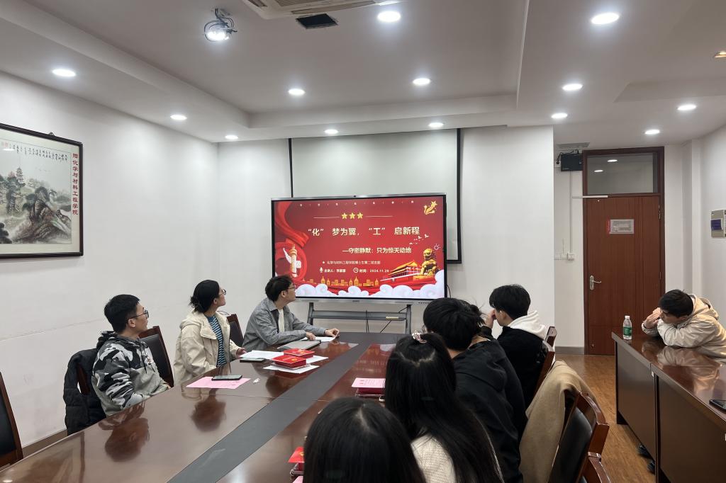 为切实增强毕业生党员的党性修养,引导和激励毕业生党员在即将走上工作岗位之际进一步浓厚爱校心、坚定报国梦、心存廉洁志,带着母校的期望和嘱托,在未来的人生道路上奋楫扬帆,续写辉煌,11月29日,博士生第二党支部在化工楼A308举行“党章进行囊,扬帆再出发”毕业生党员“六个一”主题党日活动,即“赠予一份红色礼包、签署一份廉洁承诺、上好一堂‘离别’党课、重温一次入党誓词、共过一次政治生日、共话一份青春担当”。活动由博士生第二党支部组织委员石千黛主持。