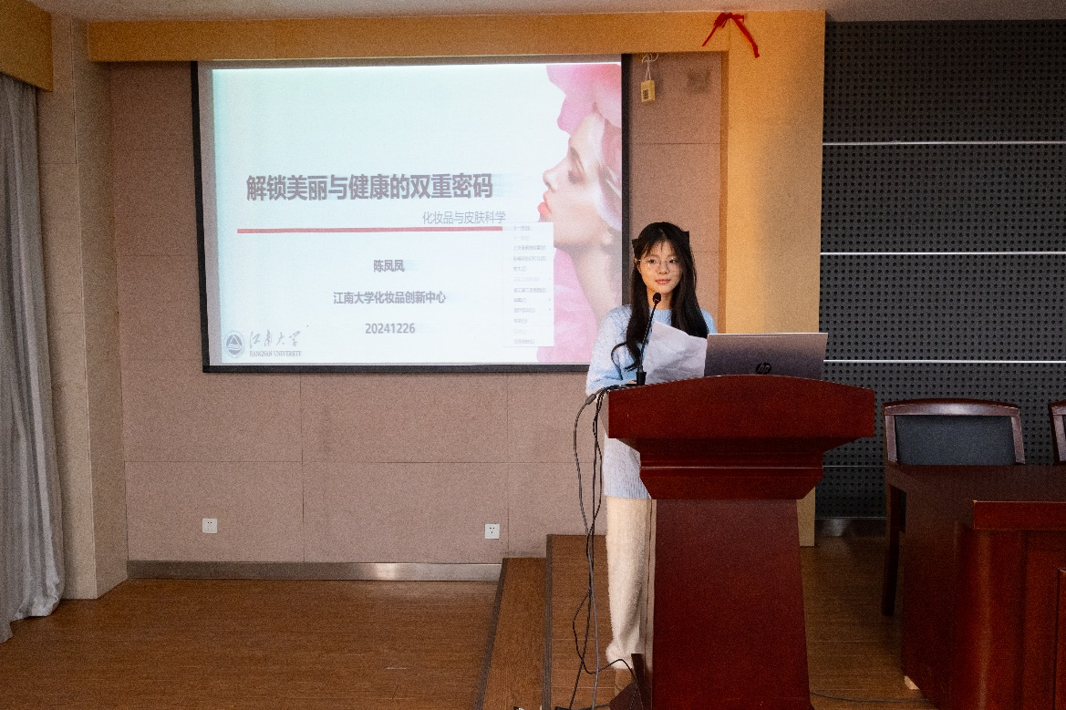 化工学院于12月26日在化工楼B329大会议室举办了益海嘉里‘学习美’活动之美丽“妆点”青春化妆品学术讲座。本次讲座邀请了化工学院化妆品方向资深配方师陈凤凤老师,为同学们带来了一场关于化妆品成分配方及成品趋势发展的学术盛宴。