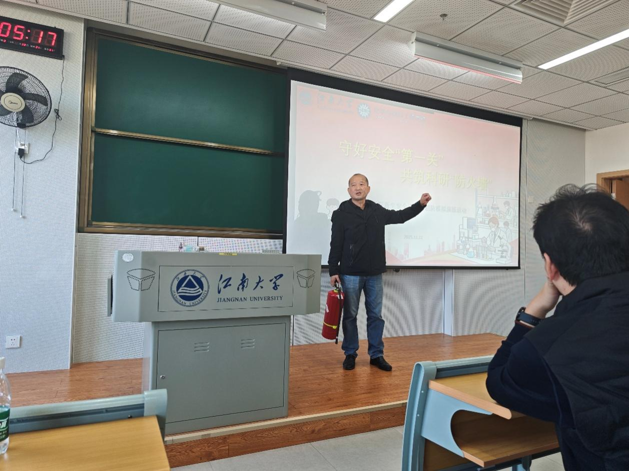 在东氿校区知行楼成功举办 “守好安全‘第一关’,共筑科研‘防火墙’”新生安全讲座暨消防模拟演练活动。宜兴市公安局反诈宣传警官高璐瑶、学校实验室与资产管理处安全技术科高珂老师、保卫处消防科刘保红老师及化工学院实验室管理张一波老师受邀担任主讲嘉宾。活动由研究生辅导员李晓洁主持。