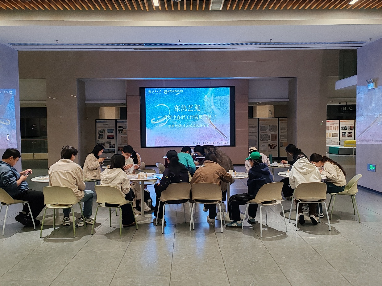 研究生会在东氿校区举办“东氿艺苑-研究生多彩生活工作坊”系列活动的第三期课程——“璃光绘梦-手工玻璃画制作课堂”。活动由化工学院研究生会联合共青团宜兴市委陶都星光课堂共同举办,邀请了常青外国语学校的朱程成老师于11月24日、11月28日、12月2日晚在知行楼二楼大厅开展三场精彩纷呈的玻璃画制作课活动,吸引了来自各专业的近50名研究生踊跃参与。