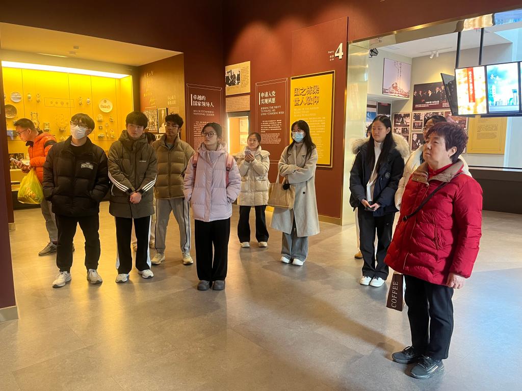 在实地参观环节,全体党员来到荣毅仁纪念馆。在讲解员的引导下,大家依次参观了主展厅、荣氏故居、大公图书馆等展区。通过一幅幅珍贵的历史图片、一件件厚重的实物资料、一段段详实的文献记载,党员同志们系统了解了荣毅仁同志为国家民族工商业发展和社会主义现代化建设作出的卓越贡献,深切感受到了荣氏家族艰苦创业、诚信经营、实业报国的奋斗历程,以及重视教育、热心公益、廉洁齐家的优良家风。纪念馆内展示的荣毅仁同志一次性多交党费60013元的收据等珍贵文物,尤其令大家驻足深思,深刻体悟其坚定的理想信念与无私的奉献精神。参观过程中,党员们神情专注,不时交流感想。大家一致认为,荣毅仁同志的一生是爱国、奋斗、奉献的一生,其精神品质是激励当代青年砥砺前行的宝贵财富。作为高校学生党员,更应自觉传承红色基因,将个人理想融入国家发展伟业,将爱国之情、强国之志转化为刻苦学习、科研报国的实际行动。