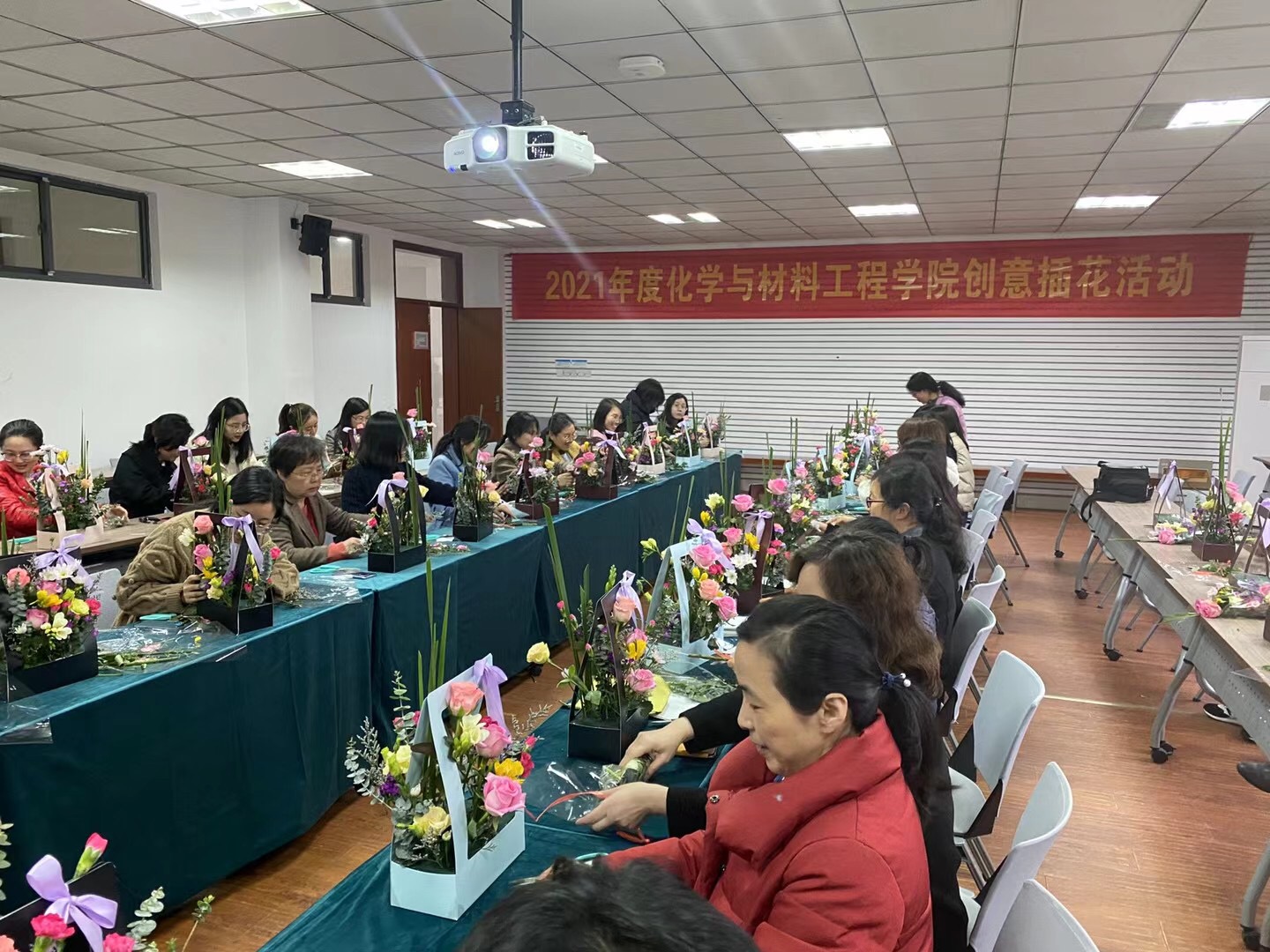 女教职工的业余文化生活,满足女教职工的精神文化需求,提升艺术文化素养,2021年3月17日下午,学院分工会组织女教职工开展插花活动。