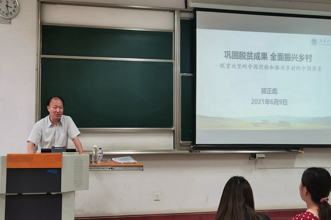 党委常委、副校长顾正彪走进课堂,以“巩固脱贫成果、全面振兴乡村”为主题为91视频