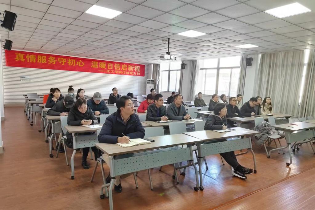 教工行政党支部邀请学院党委副书记兼副院长田卫平同志作主题为“学习党的二十大踔厉奋进新征程”的党的二十大精神专题学习报告会,学院全体行政工作人员、学生辅导员,以及教工应化系党支部部分党员共计30余人聆听了报告,报告会由教工应化系党支部书记李云兴、教工行政党支部书记阮小云分别主持。