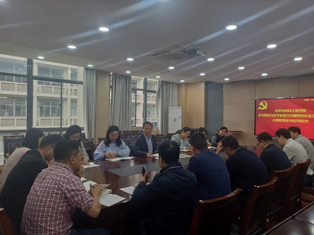 在化工楼A310会议室举行了学院学习贯彻习近平新时代中国特色社会主义思想主题教育读书班开班仪式,院党委书记潘庆伟主持会议并领学,学院领导班子成员、党委委员、师生党支部书记、辅导员、部分师生党员代表参加了会议。