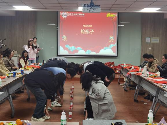随后在“笔墨生香迎新年”环节中,在场的师生通过写对联、剪窗花,互相送祝福来深刻感受传统节日的魅力;在分组游戏环节中,现场同学们积极参与,在“看emoji猜成语”环节中展现聪明才智、在“抢瓶子”游戏当中灵活应对、在“快速记忆、画画猜词”中进行记忆大比拼,现场欢声笑语一片,洋溢着热闹喜悦的氛围,游戏结束后,对积分前三名的小组的每位成员颁发“福星高照”奖,后三名的小组颁发“吉祥如意”奖。各小组团结一心,充分展现了个人才能以及团队合作的能力。最后院研究生会为获奖的同学们颁发了新年礼包。