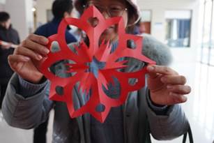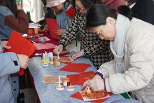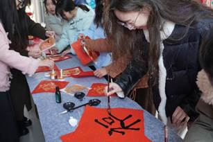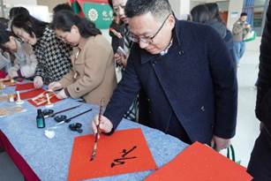 在学院一楼大厅活动现场,写春联、剪窗花、投壶等极具传统文化特色的活动区域人潮涌动。在写春联区域,老师们挥毫泼墨,一副副寓意吉祥、饱含祝福的春联在笔下诞生;剪窗花区域,巧手翻飞,精美的窗花在老师们的手中绽放,为新春增添了一份别样的艺术气息;投壶区域,老师们凝神静气,将箭矢投向壶中,在体验古代传统游戏乐趣的同时,也感受到了传统文化的独特魅力。