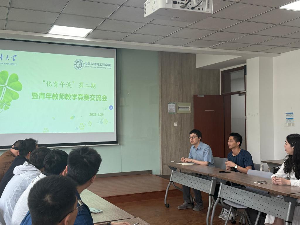 第二期“化育午谈”暨青年教师教学竞赛交流会在化工楼A316举行。本次活动邀请校青年教师教学竞赛特等奖获得者杜立永副教授做专题分享,学院20余名青年教师踊跃参与本次活动。本次活动由教学副院长王靖主持。