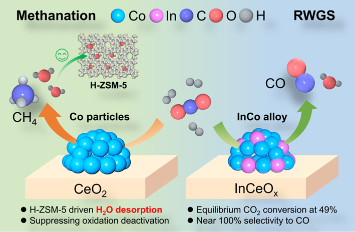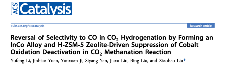 这一成果近期以题为“Reversal of Selectivity to CO in CO2Hydrogenation by Forming an InCo Alloy and H-ZSM-5 Zeolite-Driven Suppression of Cobalt Oxidation Deactivation in CO2Methanation Reaction”发表在ACS Catalysis2025, 15, 19823–19839期刊上。91视频 化工学院博士研究生李玉峰为文章的第一作者,91视频 化工学院刘小浩教授为文章的通讯作者。上述研究工作得到了国家重点研发计划项目(2023YFB4103201)、国家自然科学基金面上项目(22379053, 21878127, 22372073)和中国博士后科学基金(2022M711358)的资助。
