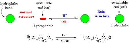 智能表面活性剂对于构建刺激-响应性自组装/分散体系和实现表面活性剂的循环利用具有重要意义。然而现有的智能表面活性剂在结构上类似于常规表面活性剂,一般以亲水的头基作为响应基团,通过环境刺激使其在亲水和疏水两种状态之间可逆转变。其缺点是,在油-水体系中,失活后的表面活性剂将转移到油相,一方面影响油相的纯度和性质,另一方面给回收和再利用带来障碍。