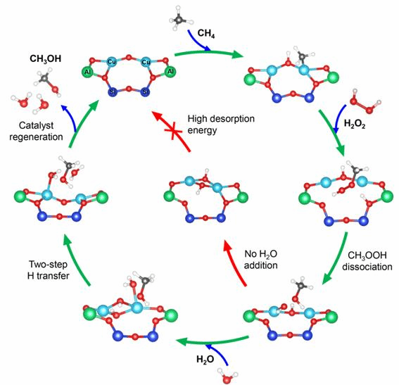 图1.[Cu2(μ-O)]2+-ZSM-5高效催化甲烷低温氧化直接制甲醇