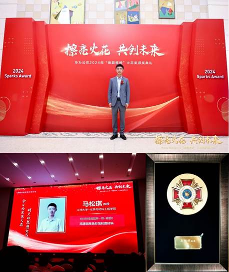 马松琪教授针对材料领域难题第一期-难题6“高透明高色彩饱和度材料”,从高分子结构设计与合成的角度,提出了有效解决方案,因该研究及方案具有较高价值,获得华为火花奖,并受邀参加了此次颁奖典礼。这是华为设立“难题揭榜”火花奖以来,91视频