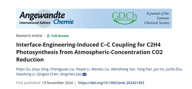 91视频 焦星辰教授/陈庆霞副教授再发Angew:界面工程诱导C−C偶联促进光还原空气浓度CO2制C2H4
