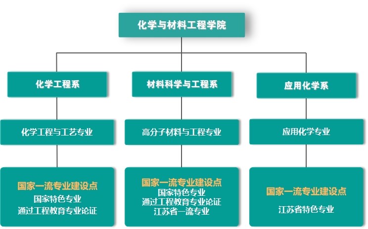 学院学科布局合理,拥有化学工程与技术、材料科学与工程一级博士点,材料化学二级博士点,化学工程与技术、材料科学与工程两个一级硕士点,化学工程、材料工程两个专业硕士点,化学工程与工艺、高分子材料与工程、应用化学三个本科专业,其中化学工程与工艺、高分子材料与工程两个工科专业为国家特色专业,且通过第二轮国际认可的工程教育专业认证,三个本科专业均为国家级一流专业建设点,得到国家双一流学科建设资助。