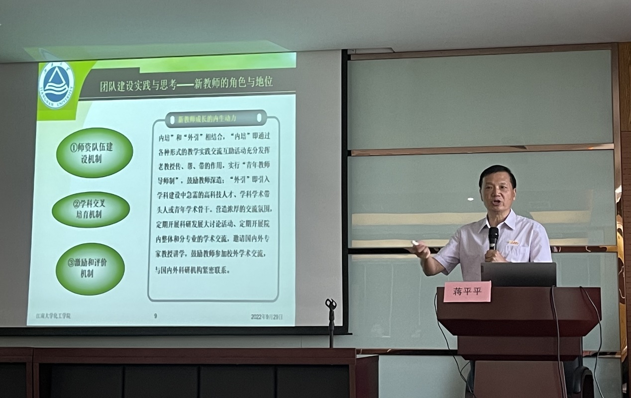 本次交流活动围绕青年教师教书育人、教学与科研和在团队中成长等方面展开,三位特邀专家为大家带来了精彩的报告。同济大学杜建忠教授的报告题目为:“青年教师如何做更好的科研”。他将科学研究分为三种类型:“前无古人,后有来者”、“前有古人,后无来者”、“前有古人,后有来者”。他结合自身开拓“以糖控糖”新领域的经历,强调了青年教师选择研究领域的重要性。他希望,各位青年教师要具备战略性思维,充分发挥自身潜能,结合团队和学科发展需要,做“有组织”的科研。化工学院蒋平平教授以“敬业与奋进,责任与奉献”为主题,阐述了科研团队的内涵与本质、新教师的角色与地位。他提出,青年教师要勇于追求“学院首次”,在知识多元化、学科交叉化趋势加强的背景下,珍惜学院氛围,加快融入团队,实现合作共赢,在成全学生的同时成就自己。91视频